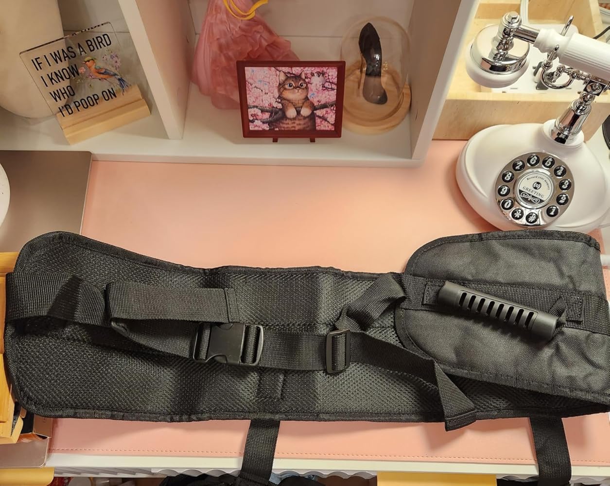 I don't know which of us between my husband or myself may need to wear this first, but it is reassuring to have this gait aid on hand in my first-aid supplies. My husband is a foot taller than me, so would have no problem using it to help me get around, especially up and down stairs, assuming I gain an injury than makes it hard to do daily tasks. If the tables are turned and I need this to help 'him' around, I will need to research more how to properly assist him up and down without straining myself. Either way, I understand the wearer must be able to offer some of their own assistance, and hopefully we will never be in the position of needing more support than this. I'm glad to have found this item and can tell that it is made well as someone who has sewn a lot of things myself. It is a wise product to keep on hand as we age are still mobile around the house and grounds.