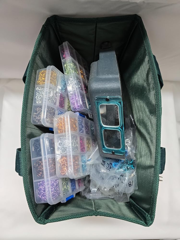 I absolutely love this craft organizer tote! The green floral design is so pretty and cheerful, and it looks even better in person. The multiple pockets make it easy to keep everything neatly organized—scissors, pens, glue sticks, threads, and all my little craft essentials finally have a place. The main compartment is roomy enough for larger items, and the sturdy construction means it holds its shape even when full. If you’re a crafter, scrapbooker, or just love staying organized, this tote is a must-have.