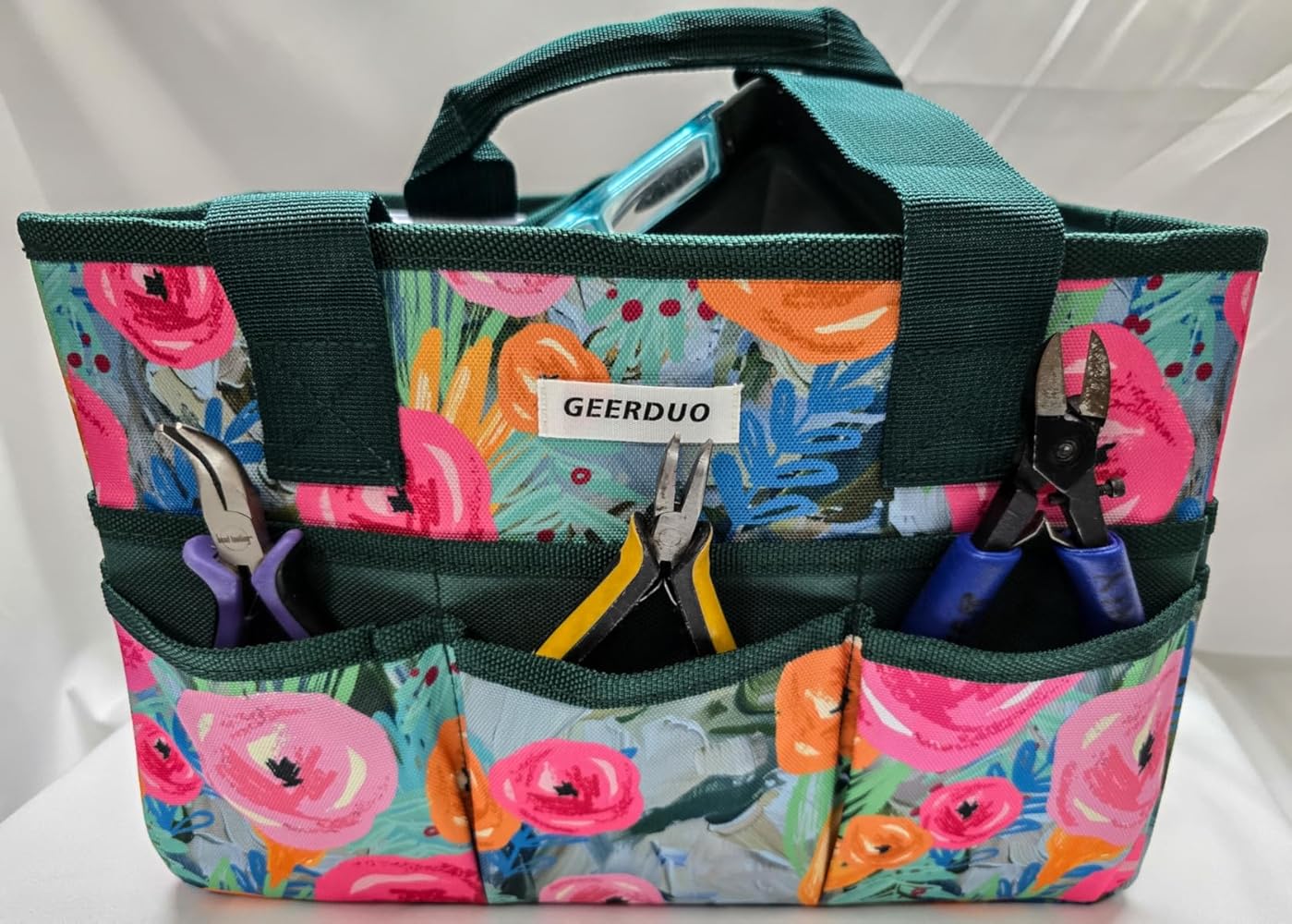 This tote is sturdy and holds all my craft supplies neatly. The pockets are really useful for pens, brushes, and small tools. It’s lightweight but has plenty of space, and the floral design is super cute!