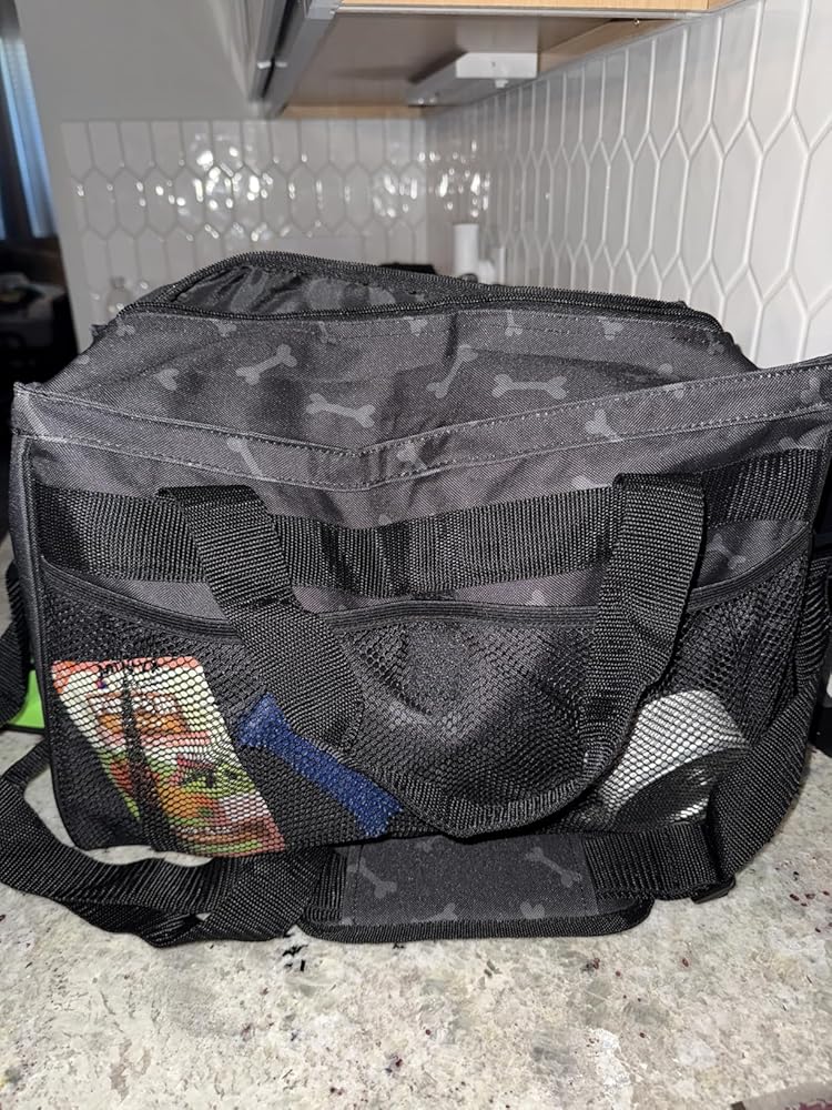 I love this bag. So easy to pack for our dog. Lots of compartments to stay organized.