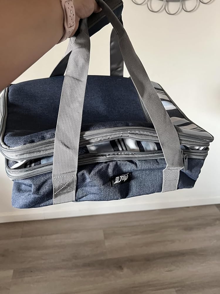 I’ve always wanted a cooler that can carry two dishes at once, and I found this is the one. It perfectly fits two dishes and keeps food hot or cold for hours. The double-decker design is super convenient for potlucks, picnics, or parties. Handles are sturdy and easy to carry, and the insulation works really well. Looks nice in blue too.