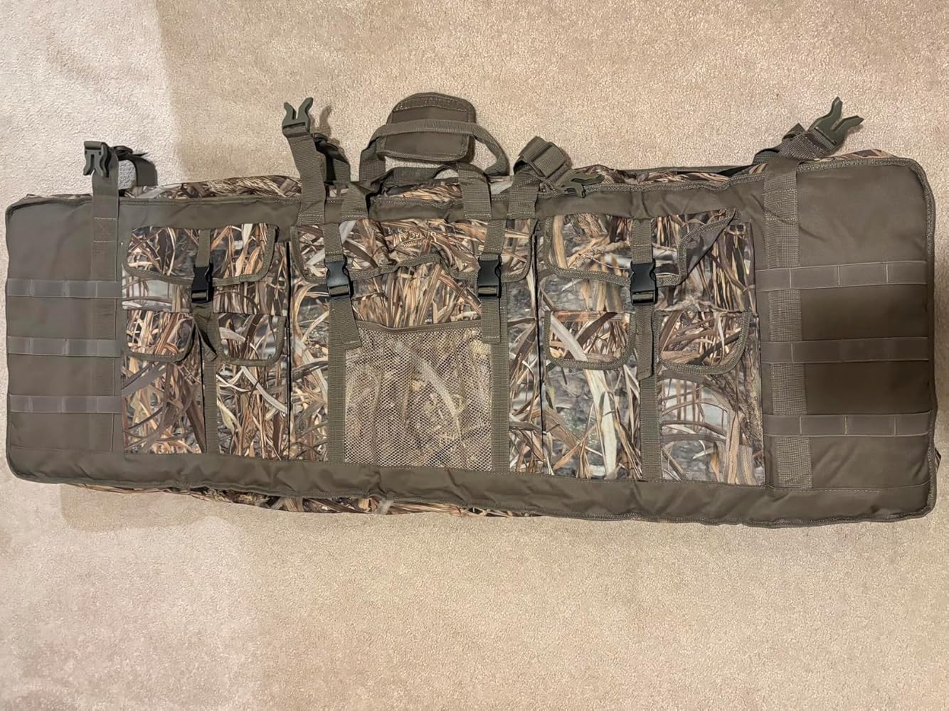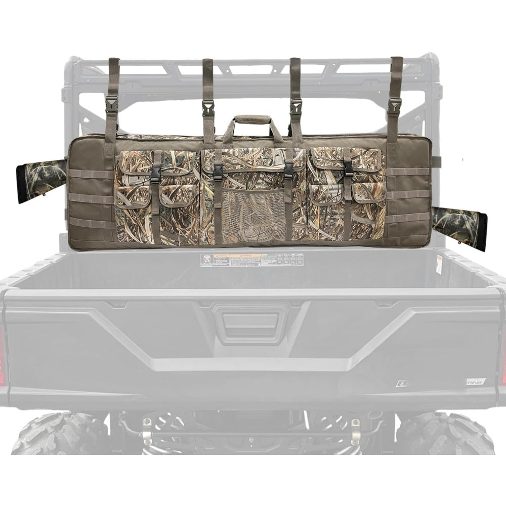 This gun bag easily attaches to the roll cage of my SXS to hold my rifles. The nice part is I can easily remove the bag and take it with me in the woods for added protection. The rubber flap plastic zippers give an extra bit of protection from the elements. The water resistant coating seems to do it's job well. Pretty good quality material and the buckles make it easy to mount and dismount.
