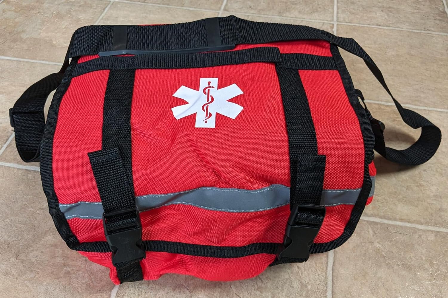 This is a very roomy but not too big EMS/EMT bag. It is 15"x12"x4". It has a huge main compartment with dividers that are removable. I removed my dividers to put my AED inside of this. It has a huge pouches on sides of this bag. I really love that it has fasteners instead of zippers to keep everything snug and secure. If and when I ever need to use the AED, I won't have to worry about fighting to open zippers to get to what I need.The straps can be tightened or loosened based on need. There is a reflective stripe around the bag which will be helpful at night or during a power outage. The bag has both a carry handle and a carrying shoulder strap as well!I was easily able to fit a clot pack, gauze, and other first aid supplies along with easily being able to clip my AED companion baggie onto this bag.I Love this bag!
