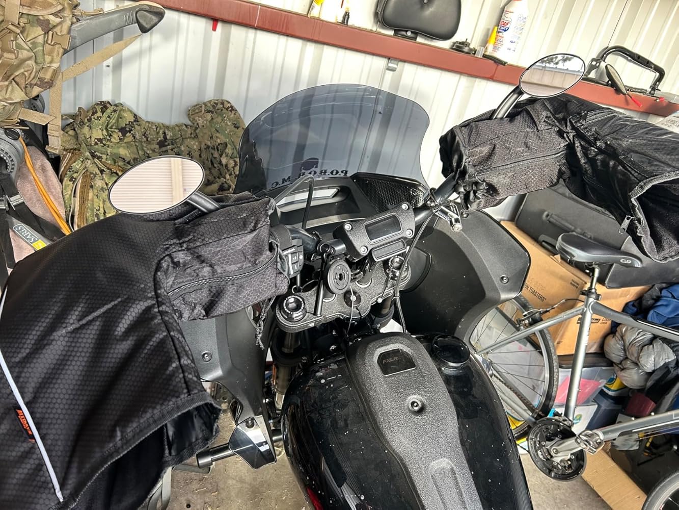 I installed these on my DR650 with Tusk D-flex pro hand guards. It's a bit of a tight fit but works well. There is a bit difficulty pushing turn signals and adjusting choke, but still doable while driving. It is much warmer than without them. Good value for price. But I don't think that will last long. I'm worried about the zipper quality.