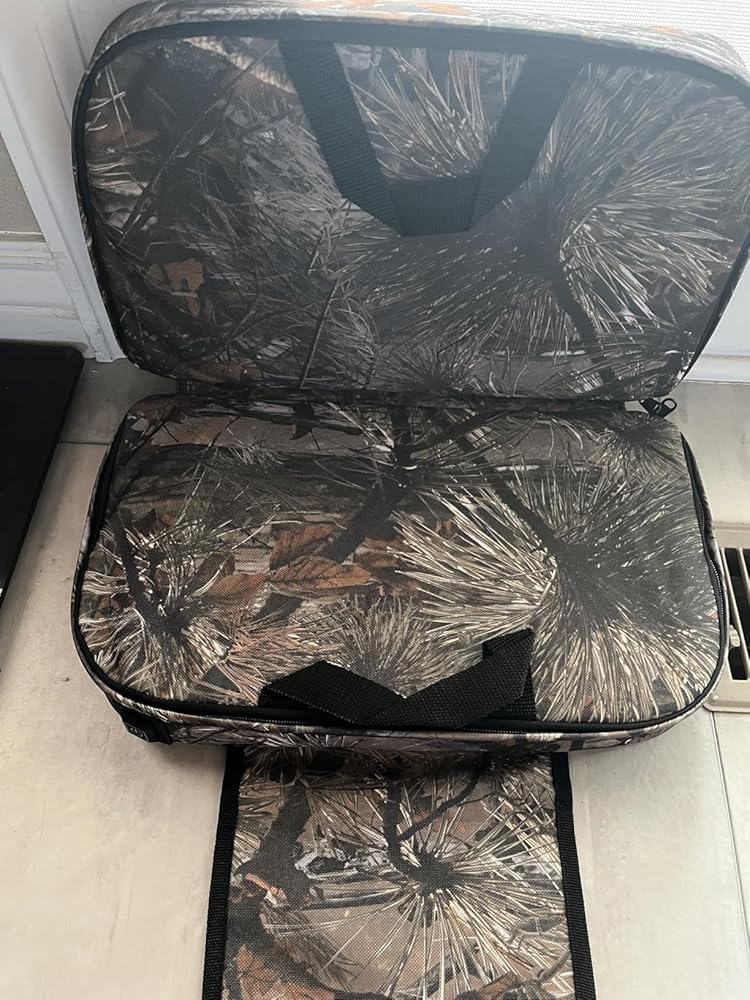 This seat provides warmth even in cold weather, so it is comfortable to sit while hunting, fishing or at the stadium. It folds up and takes up little space, easy to take with you. Suitable for hunting, camping, hiking, sports events, photo shooting in unforeseen situations and even romantic dates. The material is waterproof, durable with a camouflage pattern fits well into hunting gear. Powered by an external power bank, so it does not depend on an outlet. Powerbank is not included. The surface insulates from the cold ground or metal