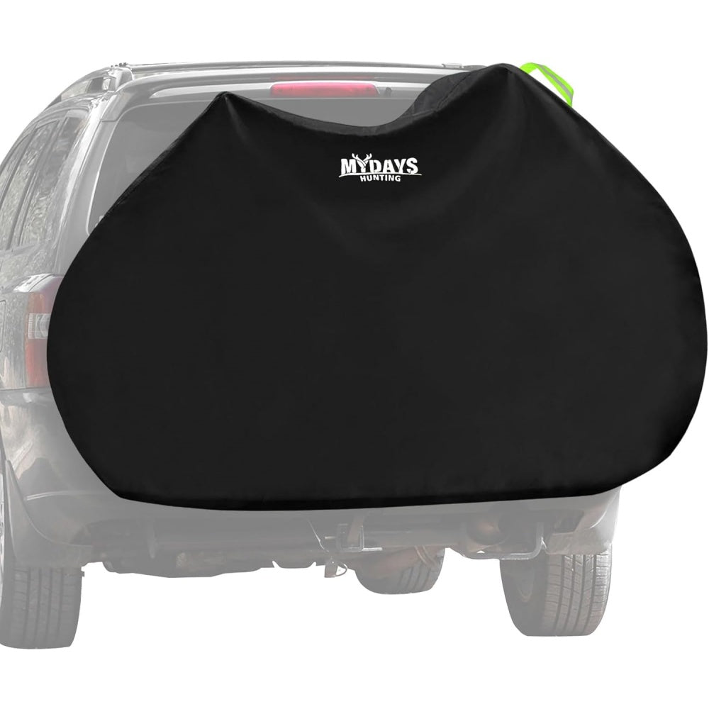 Great Bike cover!I got this bike cover for a bike holder on the back of the car and it works well. The material is nice and thick and waterproof. It was easy to put on and I was able to be adjust and secure it over the bikes. There are straps on the side you can tighten them and along the bottom another strap you can secure and adjust. There are cords on both the front and back you can pull to close it underneath, like closing a trash bag, reducing the amount of water that gets on your bikes from the road spray.I was also able to cover the bike on a platform holder really easily. I was able to secure it underneath using the straps and the pullys on the bottom tightened it so we could tie it underneath. I love that there are snap clips on the sides and underneath. It covered the bikes securely on the mounted platform as well as the rack that hangs on the back of your car.The quality of the material is great and it is manufactured well so it feels like it is going to last a long time.